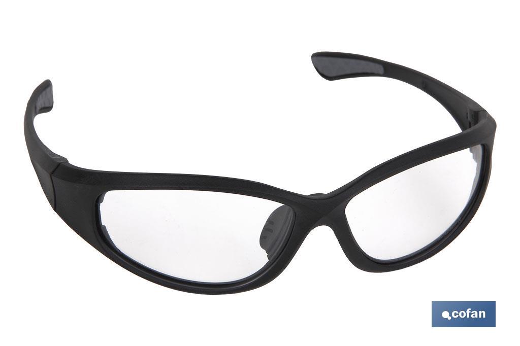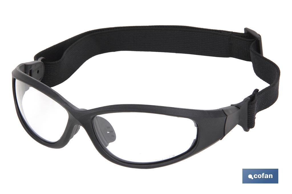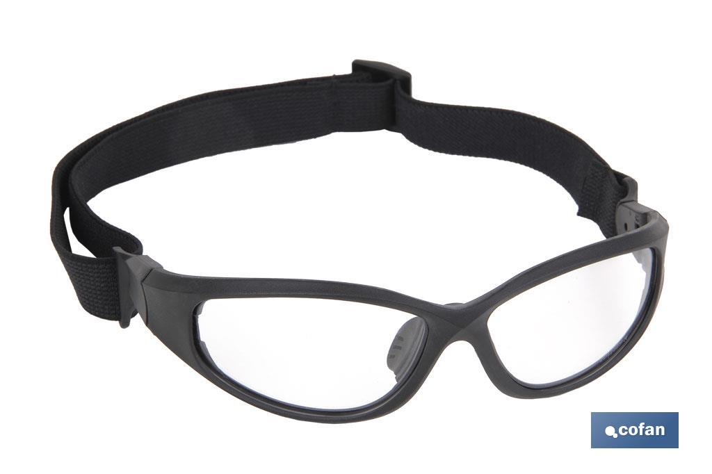 Óculos de segurança escuros acolchoados 4 em 1. Com alça de espuma intercambiável. Resistente à radiação UV. Sistema antiembaciante. Sem metal. Com lente com revestimento rígido.
